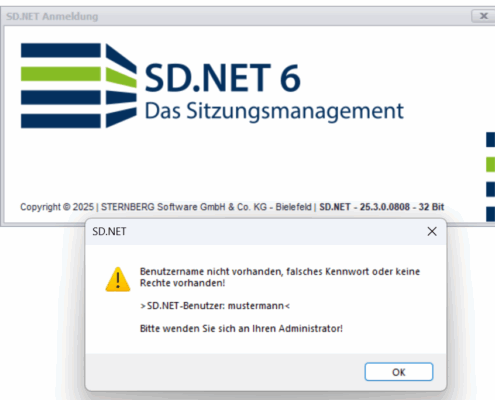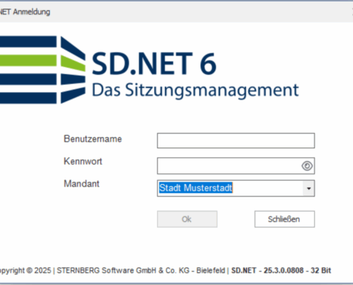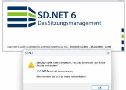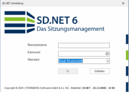 Sollte bei Ihnen keine Anmeldemaske erscheinen und Sie sind sofort im Verfahren angemeldet, so ist vom Administrator zu Ihrem Benutzer ein Netzwerklogin hinterlegt worden. In dem Fall werden Sie automatisch mit dem Benutzer im SD.NET angemeldet, mit welchem Sie sich am PC angemeldet haben.
