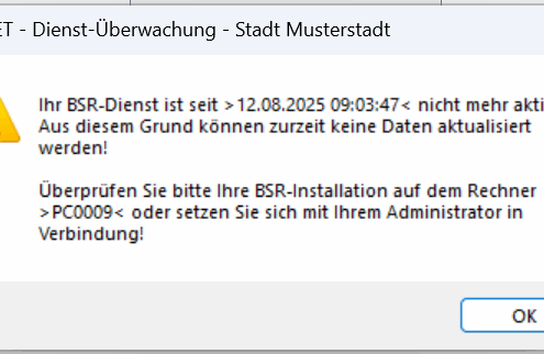 Wenn das Programm nach Bestätigung mit „Ok“ nicht oder verspätet reagiert, liegt es gewöhnlich an der fehlenden Verfügbarkeit der Datenbank oder an einer fehlenden Netzwerkverbindung. Wenden Sie sich in diesem Fall an Ihren Administrator.