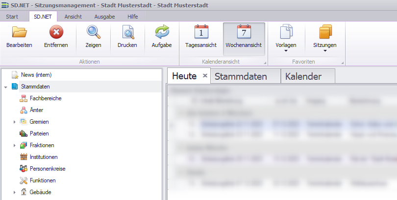 Für SD.NET typische Stammdaten sind Ämter, Gremien, Fraktionen, Mandatsfunktionen, Gebäude, Räume, Personendaten, usw.